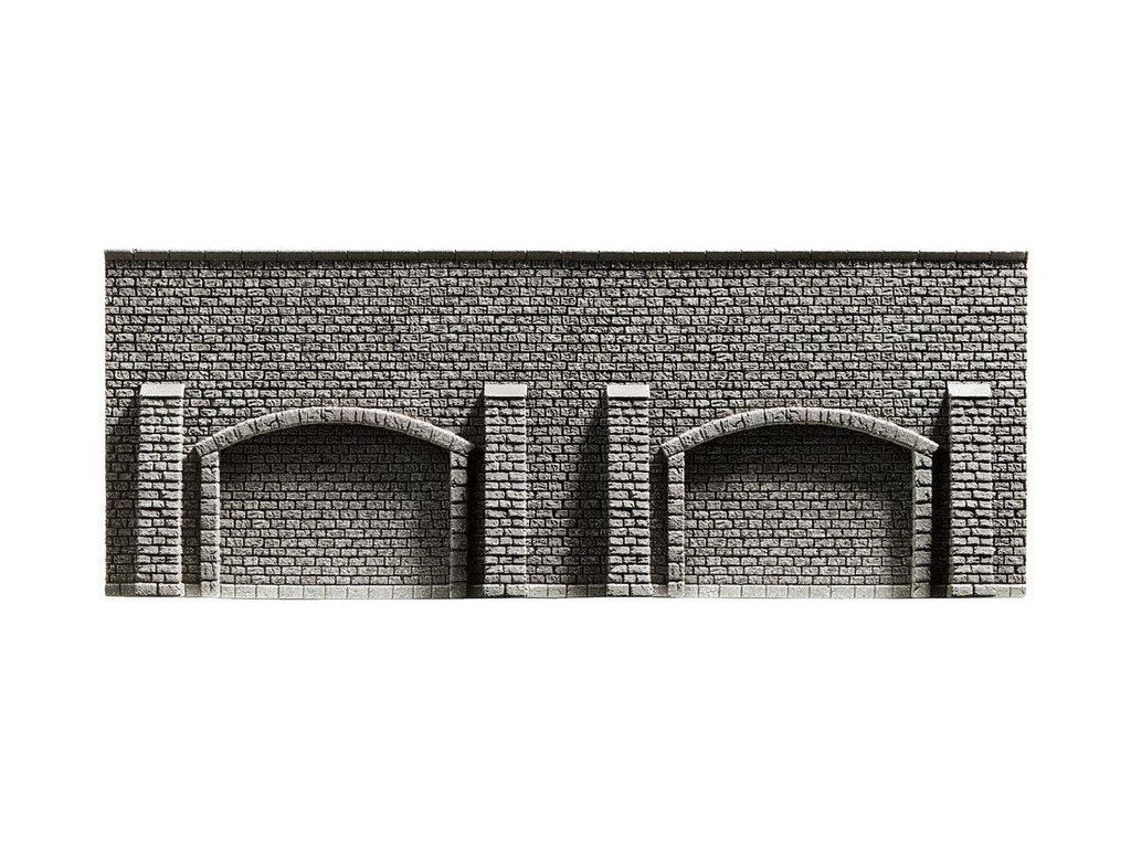 „Arkádová stěna“ z tvrdé pěny v tloušťce H0 je ideální pro použití jako ozdoba v městské scéně na vlakovém nádraží a vedle krásně navržených hrázděných domů. Precizně tvarované klenuté struktury vypadají superrealisticky a vylepšují každou modelovou železnici.
