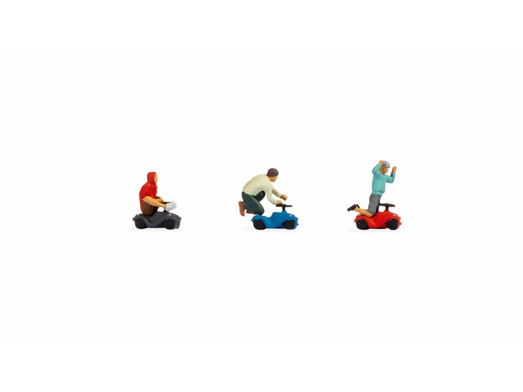 Sada figurek obsahuje tři závodníky Bobby Car na jejich vozidlech. Jeden řidič sedí na šedém Bobby Car a má na sobě červenou mikinu s kapucí a krátké hnědé kalhoty. Další figurka se každou chvíli zbavuje Bobby Car a stále se drží volantu. Má na sobě dlouhé tmavě zelené kalhoty a bílý svetr. Třetí řidič Bobby Car má červené Bobby Car a směle na něm klečí, zatímco se vrhá ze svahu, aniž by se ho držel. Má na sobě krátké šedé kalhoty a tyrkysový top a také na hlavě helmu.
