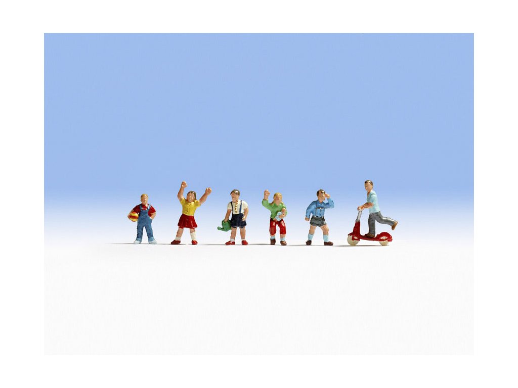 Se sadou figurek „Děti“ si můžete ve své modelové krajině vytvořit hravé a živé scény. Sada obsahuje šest ručně malovaných dětských figurek v měřítku H0 (1:87), které jsou zobrazeny v různých pózách – některé jezdí na koloběžkách, jiné si hrají s míčem nebo zalévají květiny. Díky barevnému oblečení a s láskou navrženým detailům vnášejí do každé scény dynamiku a radost.