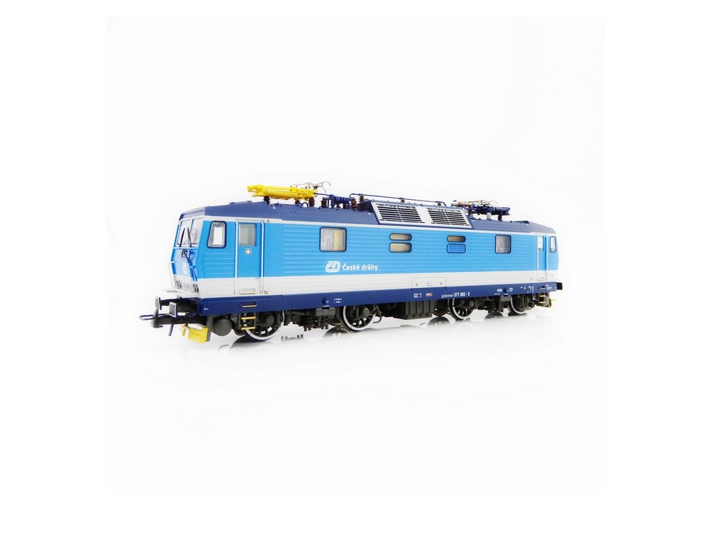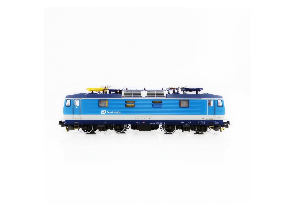 Elektrická lokomotiva 371 003 Českých drah. Model ve zbarvení "Najbrt" Pantografy s inovativním upevněním. Bohaté detailní zpracování s mnoha doplňky. Jemný design podvozků a kol, vzduchovými nádržemi v uzavřené podobě pro realistickou prezentaci ve vitrínách. Zadní návěstidlo přepínatelné pomocí DIP přepínače.