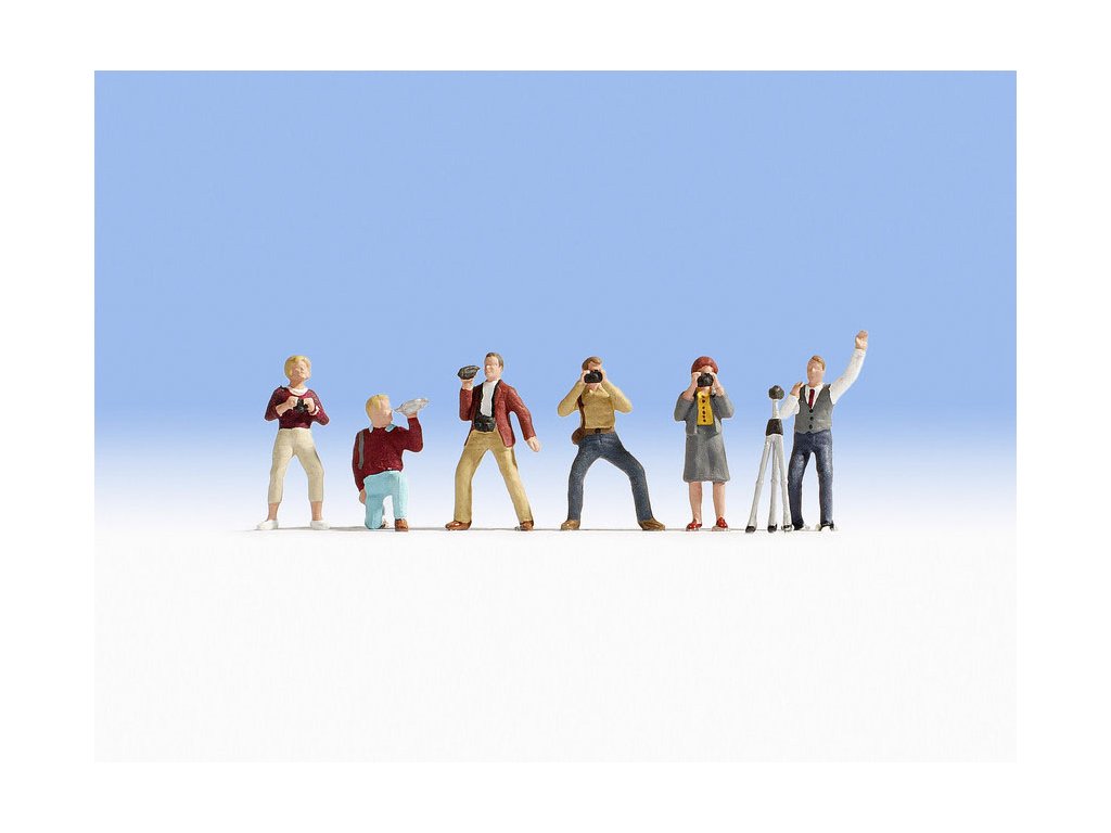 Naše sada figurek „Fotografové“ v měřítku H0 (1:87) vdechne vašemu modelovému terénu život a dynamiku. Sada obsahuje šest detailních a ručně malovaných figurek: pět stojících a jednoho klečícího fotografa, všichni v různých pózách a oblečení. Ať už je to fotograf v červeném svetru hledající motiv, nebo fotograf akce se stativem – tyto postavy zachytí každý zvláštní okamžik. Ideální pro realistické ztvárnění scén na vašem modelovém kolejišti nebo v diorámatech. Popusťte uzdu své kreativitě a obohaťte svou krajinu těmito jedinečnými figurkami!