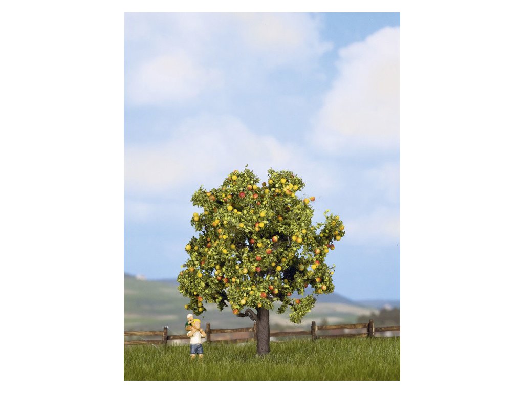 Lidé si užívají teplých teplot v přírodě. Červené, křupavé jablko přímo ze stromu nesmí chybět! Letní nálada je zde zaručena. Přeneste tuto láskyplnou scénu do své modelové krajiny. Kmeny stromů jsou náročně ručně kolorovány, takže nejsou vidět žádné lesklé plastové plochy. Aby strom získal větší objem, je do větví zapracována jemná pavučina ještě před vločkováním. Jako vločkový materiál jsou použity kvalitní listy NOCH. Speciálně broušený a náročně probarvený materiál tvarem a barvou připomíná olistění původních stromů. Stejně jako v přírodě mají listy modelu NOCH pouze jemné větve.