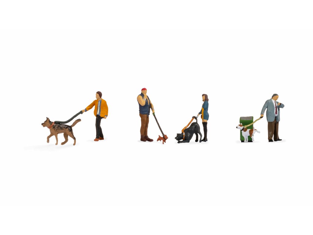 Sada figurek obsahuje 4 figurky se 4 psy. Součástí sady je také zelený koš s šedým víkem na psí exkrementy. Je důležité, aby majitel vždy řádně zlikvidoval psí exkrementy, aby neobtěžoval ostatní kolemjdoucí. Jedna z figurek má na sobě černé kalhoty, hnědé boty a oranžovou bundu. Na vodítku má německého ovčáka. Žena v modrých šatech a dlouhých botách se prochází se svým černým psem, který táhne na hnědém vodítku. Muž ve světle modré bundě, pod kterou má na sobě bílou košili a černou kravatu, se dívá na hodinky, zatímco jeho bílo-hnědý pes trpělivě čeká na vodítku. Muž s hnědým jezevčíkem na černém vodítku dodává sadě figurek dokonalost. Má na sobě tmavě hnědé kalhoty, černé boty a modrou bundu bez rukávů. Je velmi svalnatý a na hlavě má oranžovou látku.