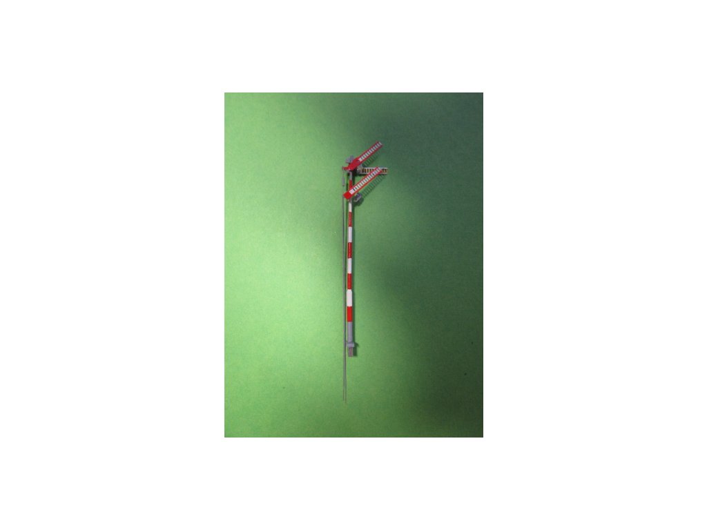 Tříramenné mechanické návěstidlo v měřítku H0 je výjimečným doplňkem pro modelová kolejiště, která se zaměřují na přesné ztvárnění železniční signalizace. Tento detailně propracovaný model umožňuje simulaci návěstních znaků, které výrazně zvyšují úroveň realismu na vašem kolejišti. Kvalitní konstrukce a autentický design zajistí, že návěstidlo bude nejen funkčním, ale také vizuálně poutavým prvkem na vašem modelu železnice. Mechanická hlavní návěstidla platná jen pro jízdu vlaku, mají nátěry stožárů s červenými a bílými pruhy stejné délky, popřípadě značení červenými označovacími štítky s bílím písmem i orámováním.