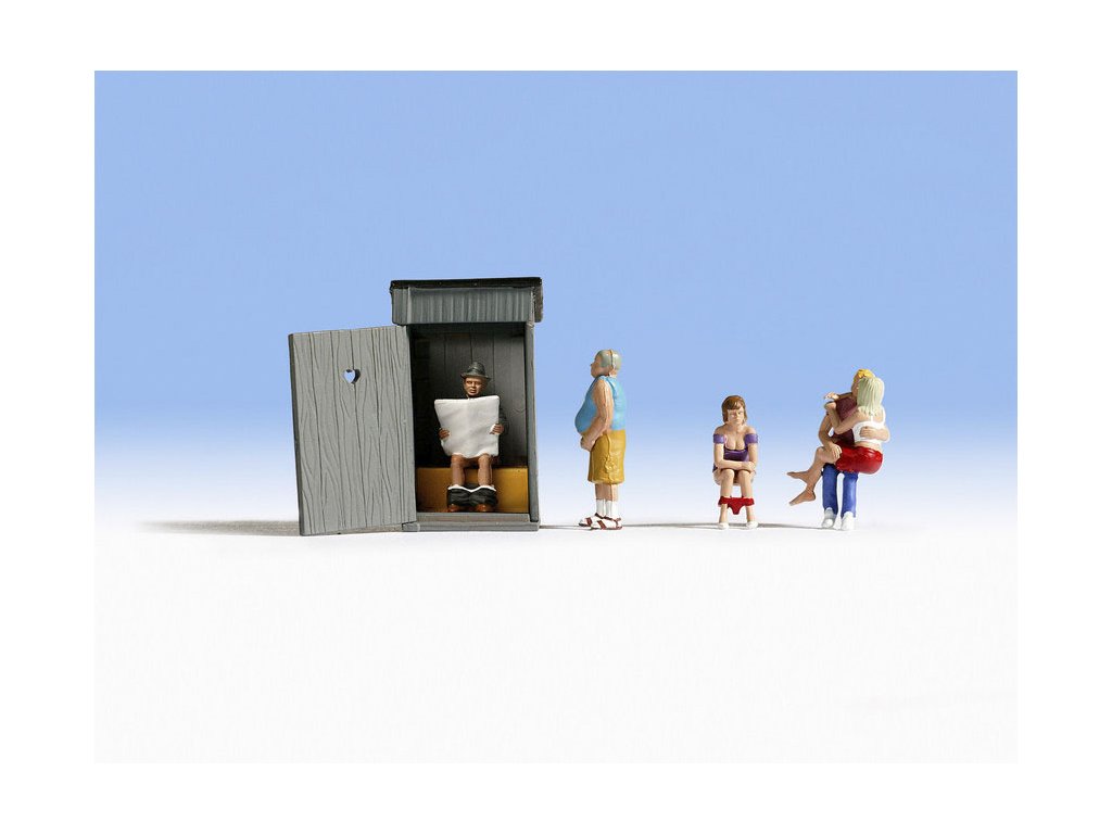 Sada pro měřítko H0 (měřítko 1:87, výška cca 2 cm) obsahuje pět ručně malovaných figurek a latrínu, které lze využít k zábavným scénám z každodenních životů na modelových kolejích nebo v diorámatech. Součástí je muž čtoucí noviny v latríně, žena dřepící si při potřebě a líbající se pár. Čtvrtou figurkou je muž netrpělivě čekající před latrínou. Díky humorným detailům figurky oživí každou modelovou krajinu!