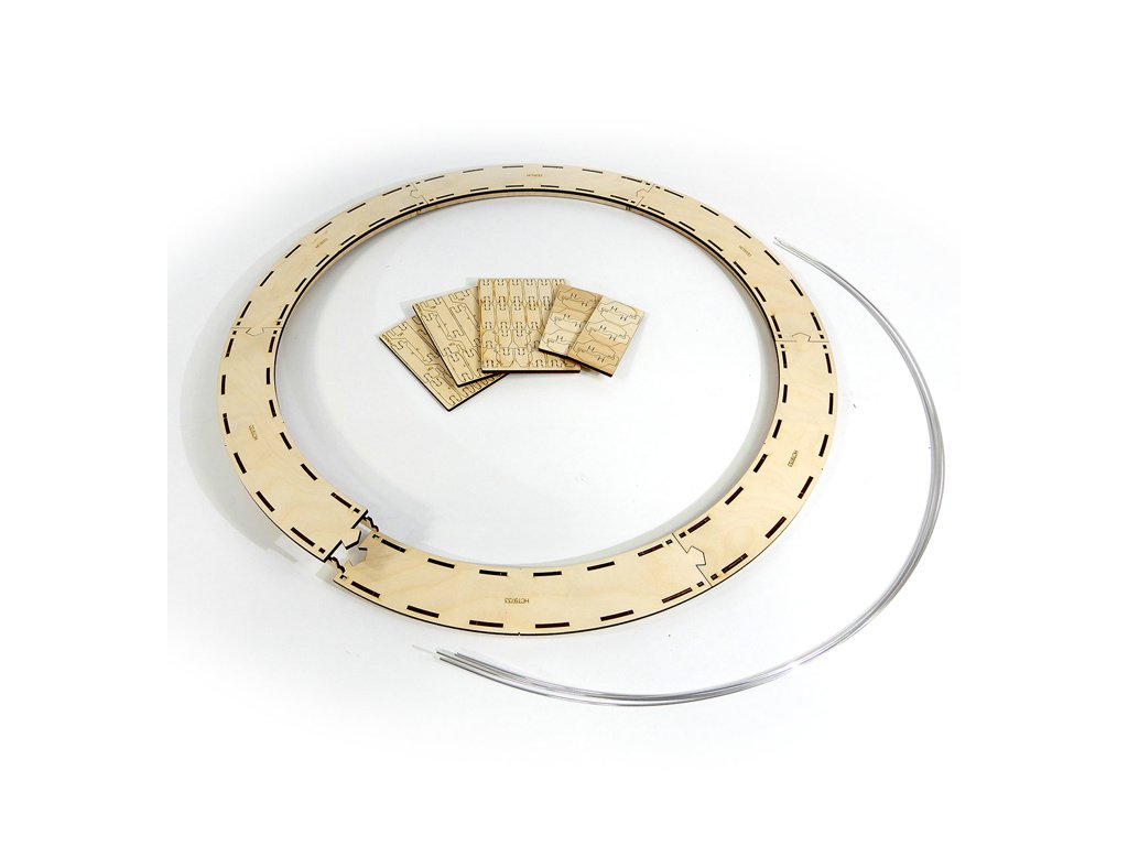 RONDELA je určena pro nájezdy a výjezdy do skrytého nádraží a velkou změnu výšky tratě ve spirálovém stoupání. Každá Rondela může být sestavena s levotočivým nebo pravotočivým stoupáním. Pro stavbu jsou použity obloukové segmenty I-Track. Jsou vyrobeny z kvalitní překližky. Mají různé poloměry a jsou navrženy pro jednoklejné a dvojkolejné tratě. Setavují se za sebou do potřebného tvaru. Nemusíte tedy nic řezat ani brousit – pouze sestavujete segmenty do požadovaného tvaru. Pokud potřebujete vystoupat nahoru na malém prostoru, můžete klidně stavět několik pater Rondely nad sebou, počet pater není limitován. Doporučená maximální výška stoupání jsou 4%. Výška stoupání je dána dodávanými sloupky. Základní rozteč sloupků je 30° na oblouku. Pokud potřebujete změnit úhel stoupání, jednoduše posunete sloupky tak, aby vyhovovaly vaší potřebě. Při zvětšení vzdálenosti mezi sloupky se úhel stoupání snižuje. Při zkrácení vzdálenosti (úhlu) mezi sloupky se úhel stoupání zvětšuje – Pozor na dodržení doporučeného maximálního stoupání! Spirálová trať - Rondela se staví na standartní Základní desce nebo na Základní dece Rondela. Tato deska má konstrukci navrženou tak, aby navazovala plynule na skryté nádraží.