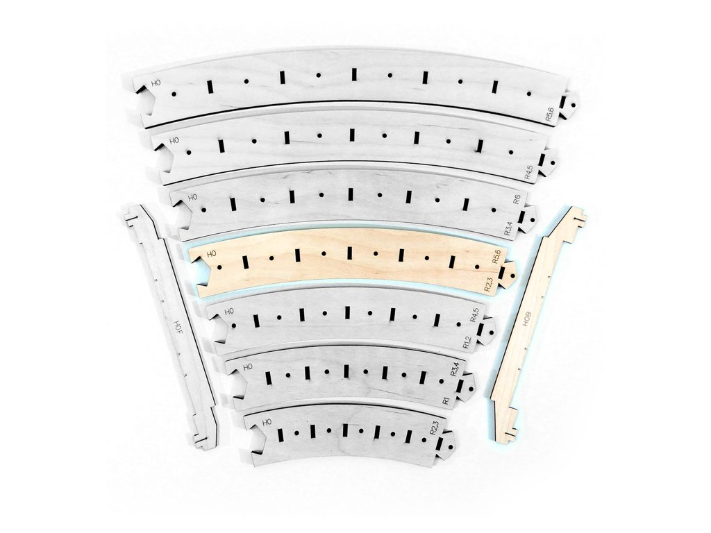 Šablony oblouk.tratě R2/R3:R5/R6 s podložím H0 6ks