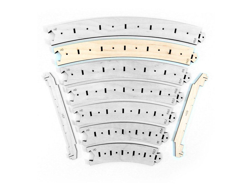 Šablony oblouk.tratě R4/R5:R7/R8 s podložím H0 6ks