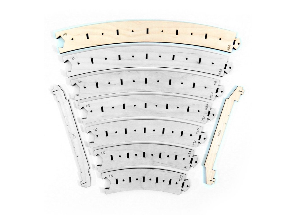 Šablony oblouk.tratě R5/R6:R8/R9 s podložím H0 6ks