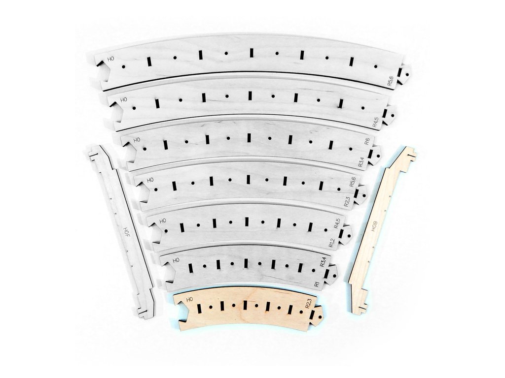 Šablony-obloukové tratě R2/R3 s podložím H0 6ks