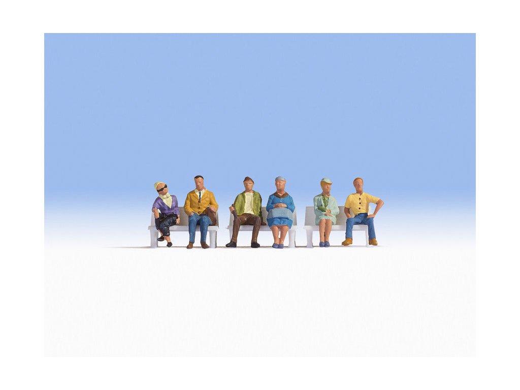 Sada figurek NOCH „Sedící lidé“ (číslo položky 15532) v měřítku H0 (měřítko 1:87) přináší do vaší modelové železnice živé scény. Šest ručně malovaných figurek zobrazuje různé lidi, jak sedí uvolněně na lavičce nebo čekají na vlak. Od elegantně oblečené dámy s kloboukem přes obchodníka s aktovkou až po mladého muže v džínách – každá figurka je bohatě detailní a dokonale se hodí do městských nebo nádražních scén.