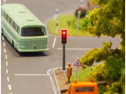 Dva semafory s LED světelnými signály v barvách zelené, žluté a červené.Měřítko: HO Výrobce: Faller