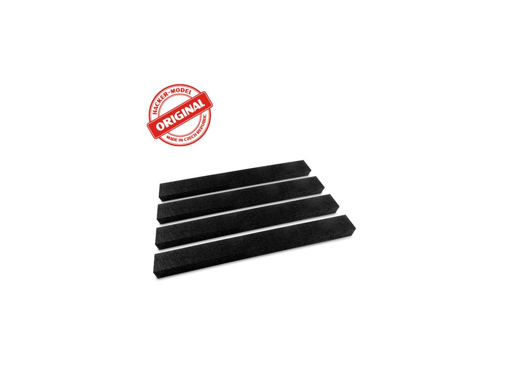 Systém Hacker I-Track obsahuje také podpěry pro snadnou montáž našich segmentů I-Track nebo jiných konstrukcí. Podpěry jsou k dispozici ve dvou různých verzích. Jako dřevěné podpěry a jako univerzální podpěry. Univerzální podpěry jsou vyrobeny ze speciálního pěnového materiálu a mají rozměry 60x40x600 mm nebo 25x40x600 mm. Univerzální podpěry se jednoduše nařežou nožem na požadovanou délku. Univerzální podpěry se poté připevní pomocí tavného lepidla nebo našeho lepidla Hacker CA.