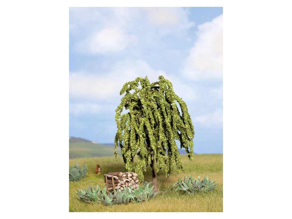 Dlouhé, zelené listnaté větve, které sahají téměř k zemi. Dlouhé zelené větve listů sahají hluboko dolů. Z dřevin patří mezi vrby. Díky tomu vypadá s visícími větvemi trochu smutně, proto se jí říká „smuteční vrba“. Aby strom získal větší objem, je do větví zapracována jemná pavučina ještě před vločkováním. Stojí idylicky v širém poli, je ideální na zahradu nebo do městské scény.Vytvářejte realistické scény a inscenujte je ještě detailněji pomocí "smuteční vrby".