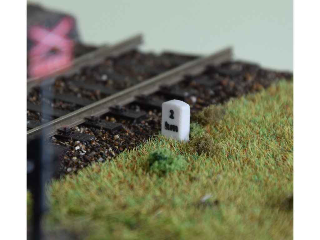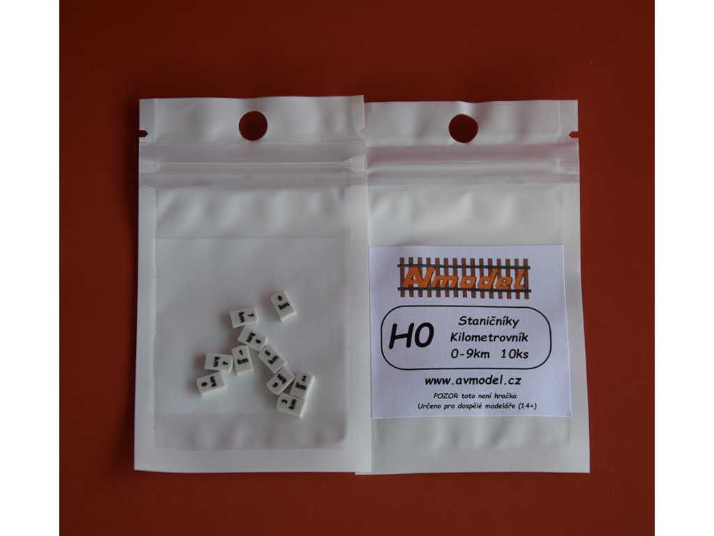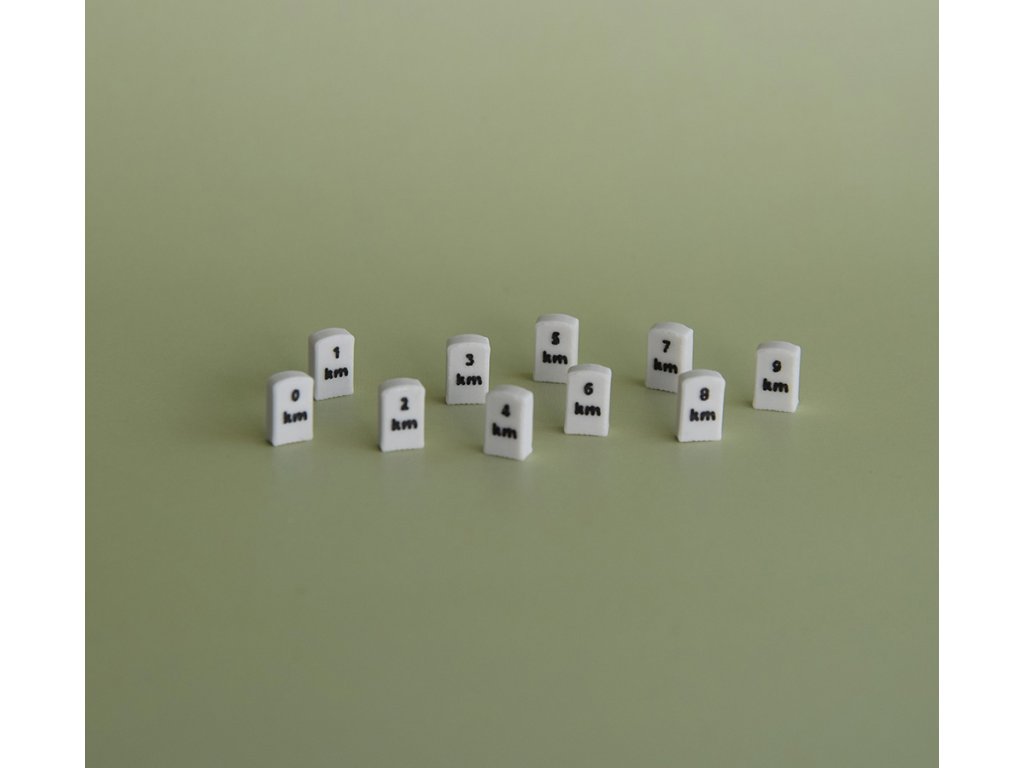 Výrobce: AV model Měřítko: HO 1:87 Sada staničníků – kilometrovník 0-9km – celkem 10ks.