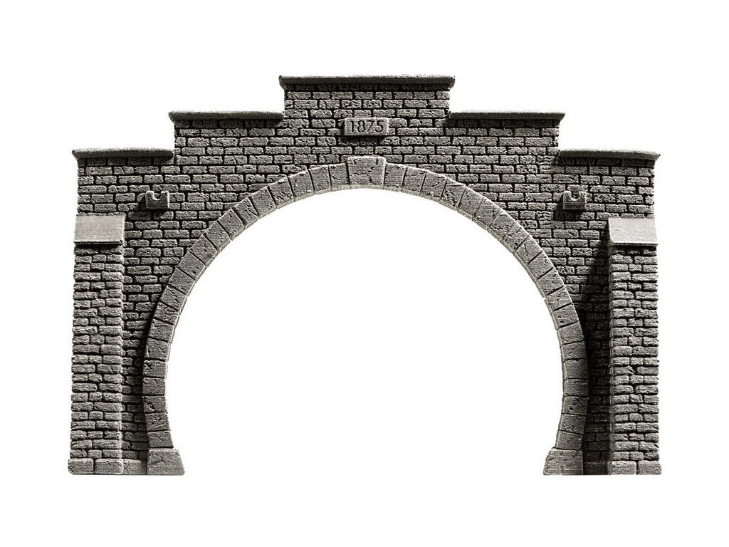 Dvoukolejný „tunelový portál“ z řady Steinmauer PROFI plus z tvrdé pěny je ideální pro realistické vytvoření dvoukolejných tunelových a horských vjezdů. Portál v měřítku H0 (měřítko 1:87) nejen definuje vzhled železniční krajiny – a to jak v terénu, tak i v modelu na vašem návrhu.