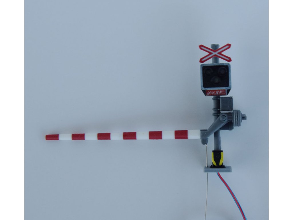 Závory s výstražníkem podle vzoru AŽD 97 (jednokolejný přejezd).