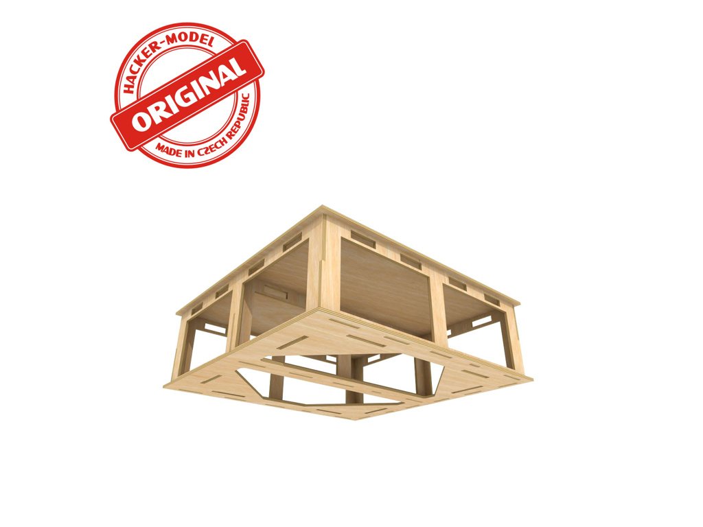 Základní deska pro stavbu kolejiště. Deska má speciální konstrukci, která zaručuje tuhost a velmi nízkou hmotnost. Vyztužovací příčníky mají u horní strany otvory, které lze použít pro instalci kabelů. Otvory ve spodní desce zajistí přístup do všech míst. V případě potřeby je lze zakrýt dodanými deskami a využít jako odkládací prostory. Desky lze poskládat na požadovaný rozměr. Originál Hacker Desky se připevňují přímo na Originál základní rám vyrobený z hoblovaných latí latí. Rám je vhodné dole opatřit otočnými kolečky. S celou konstrukcí lze lehce pohybovat do všech stran a "ušetříte" tak místo. Nemusíte mít uličku kolem celého kolejiště. Dodává se v rozloženém stavu. Sestavení je jednoduché. Vše do sebe zapadá na zámky. Lepí se lepidlem na dřevo (Herkules apod.)