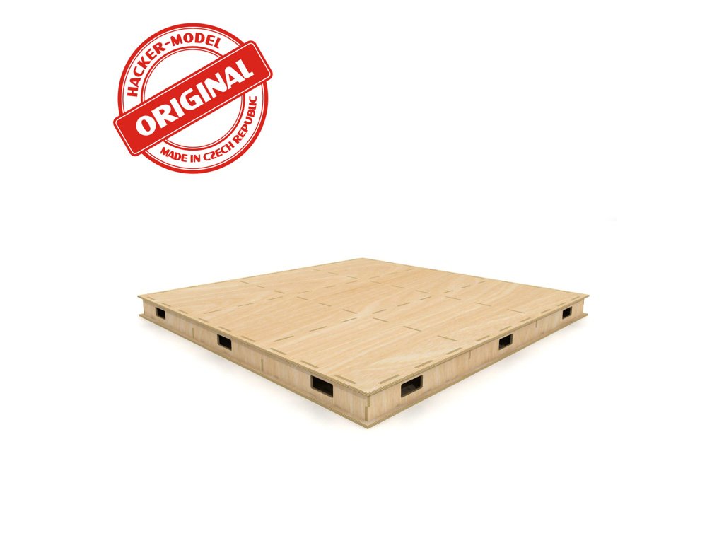 Deska pod Rondelu. Deska má speciální konstrukci, která zaručuje tuhost a velmi nízkou hmotnost. Vyztužovací příčníky mají u horní strany otvory, které lze použít pro instalci kabelů. Otvory ve spodní desce zajistí přístup do všech míst. V případě potřeby je lze zakrýt dodanými deskami a využít jako odkládací prostory. Desky lze poskládat na požadovaný rozměr. Originál Hacker Desky se připevňují přímo na Originál základní rám vyrobený z hoblovaných latí latí. Rám je vhodné dole opatřit otočnými kolečky. S celou konstrukcí lze lehce pohybovat do všech stran a "ušetříte" tak místo. Nemusíte mít uličku kolem celého kolejiště. Dodává se v rozloženém stavu. Sestavení je jednoduché. Vše do sebe zapadá na zámky. Lepí se lepidlem na dřevo (Herkules apod.)