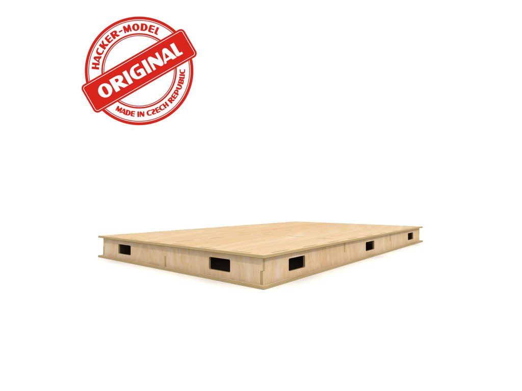 Deska pod Rondelu. Deska má speciální konstrukci, která zaručuje tuhost a velmi nízkou hmotnost. Vyztužovací příčníky mají u horní strany otvory, které lze použít pro instalci kabelů. Otvory ve spodní desce zajistí přístup do všech míst. V případě potřeby je lze zakrýt dodanými deskami a využít jako odkládací prostory. Desky lze poskládat na požadovaný rozměr. Originál Hacker Desky se připevňují přímo na Originál základní rám vyrobený z hoblovaných latí latí. Rám je vhodné dole opatřit otočnými kolečky. S celou konstrukcí lze lehce pohybovat do všech stran a "ušetříte" tak místo. Nemusíte mít uličku kolem celého kolejiště. Dodává se v rozloženém stavu. Sestavení je jednoduché. Vše do sebe zapadá na zámky. Lepí se lepidlem na dřevo (Herkules apod.)