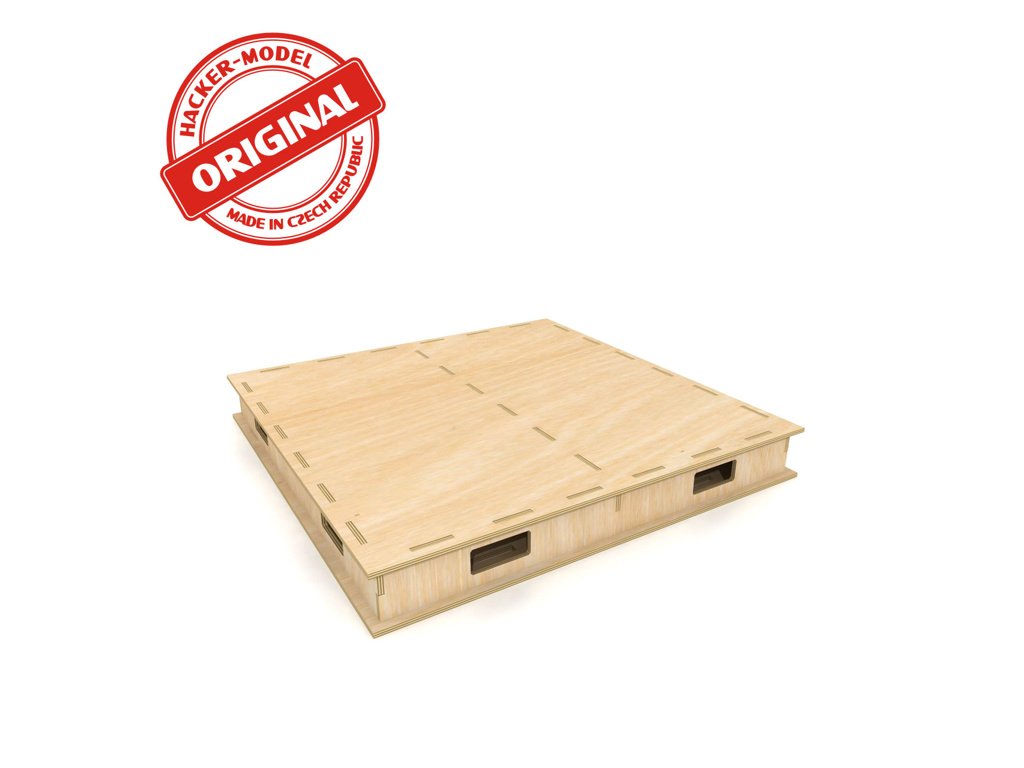 Deska pod Rondelu. Deska má speciální konstrukci, která zaručuje tuhost a velmi nízkou hmotnost. Vyztužovací příčníky mají u horní strany otvory, které lze použít pro instalci kabelů. Otvory ve spodní desce zajistí přístup do všech míst. V případě potřeby je lze zakrýt dodanými deskami a využít jako odkládací prostory. Desky lze poskládat na požadovaný rozměr. Originál Hacker Desky se připevňují přímo na Originál základní rám vyrobený z hoblovaných latí latí. Rám je vhodné dole opatřit otočnými kolečky. S celou konstrukcí lze lehce pohybovat do všech stran a "ušetříte" tak místo. Nemusíte mít uličku kolem celého kolejiště. Dodává se v rozloženém stavu. Sestavení je jednoduché. Vše do sebe zapadá na zámky. Lepí se lepidlem na dřevo (Herkules apod.)