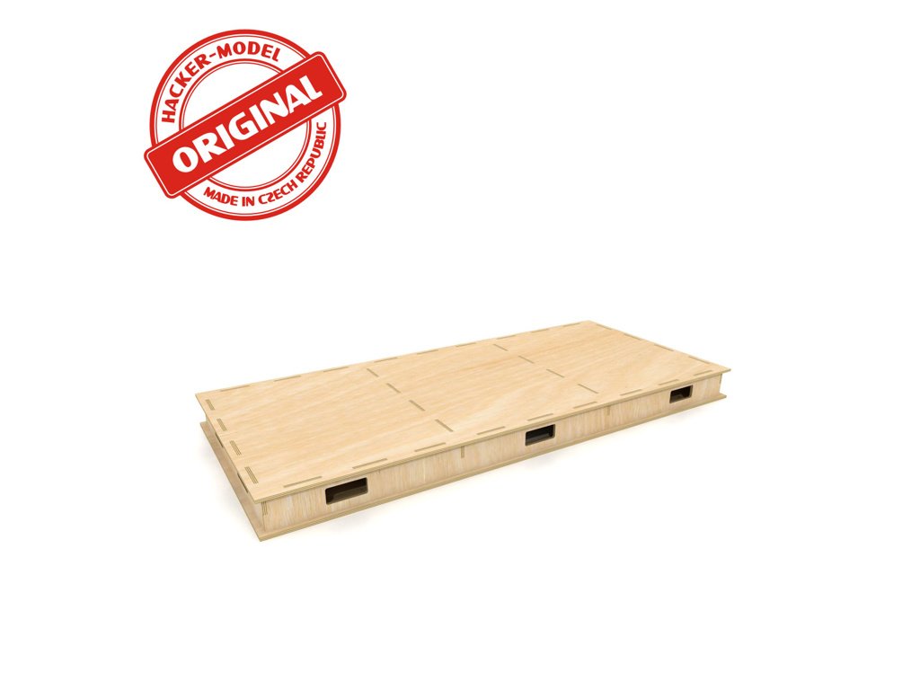 Deska pod Rondelu. Deska má speciální konstrukci, která zaručuje tuhost a velmi nízkou hmotnost. Vyztužovací příčníky mají u horní strany otvory, které lze použít pro instalci kabelů. Otvory ve spodní desce zajistí přístup do všech míst. V případě potřeby je lze zakrýt dodanými deskami a využít jako odkládací prostory. Desky lze poskládat na požadovaný rozměr. Originál Hacker Desky se připevňují přímo na Originál základní rám vyrobený z hoblovaných latí latí. Rám je vhodné dole opatřit otočnými kolečky. S celou konstrukcí lze lehce pohybovat do všech stran a "ušetříte" tak místo. Nemusíte mít uličku kolem celého kolejiště. Dodává se v rozloženém stavu. Sestavení je jednoduché. Vše do sebe zapadá na zámky. Lepí se lepidlem na dřevo (Herkules apod.)