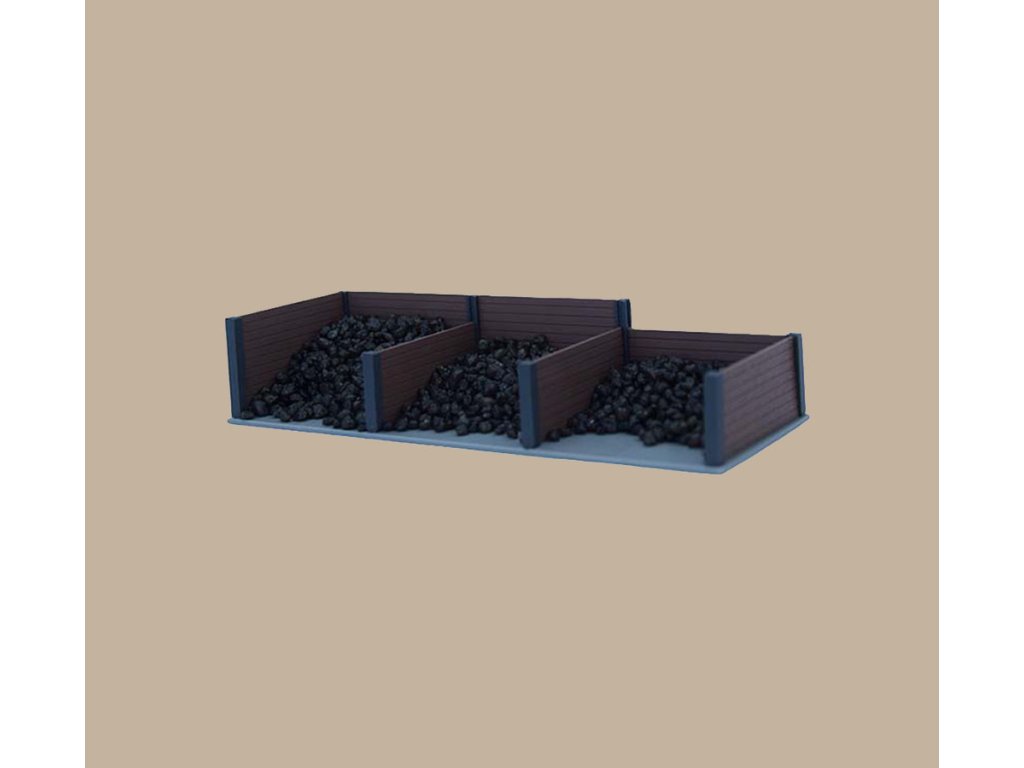 Zásobníky na uhlí, včetně imitace uhlí. Vyrobeno vícebarevným 3D tiskem.
